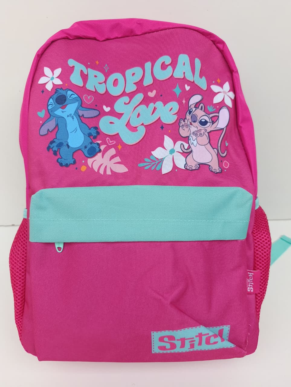 Organización: El interior está dividido en dos secciones con compartimentos de malla gris para organizar lápices, libretas y accesorios.